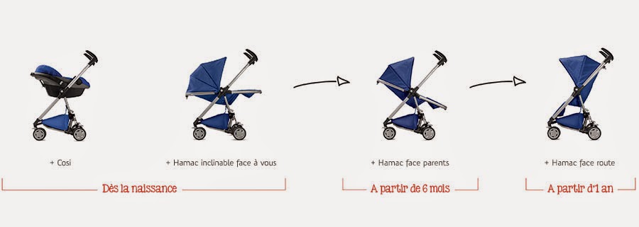 On peut y clipser un Cosy (à acheter séparément) ou utiliser le hamac inclinable comme landau face à soi (pour surveiller ou plutôt admirer bébé).