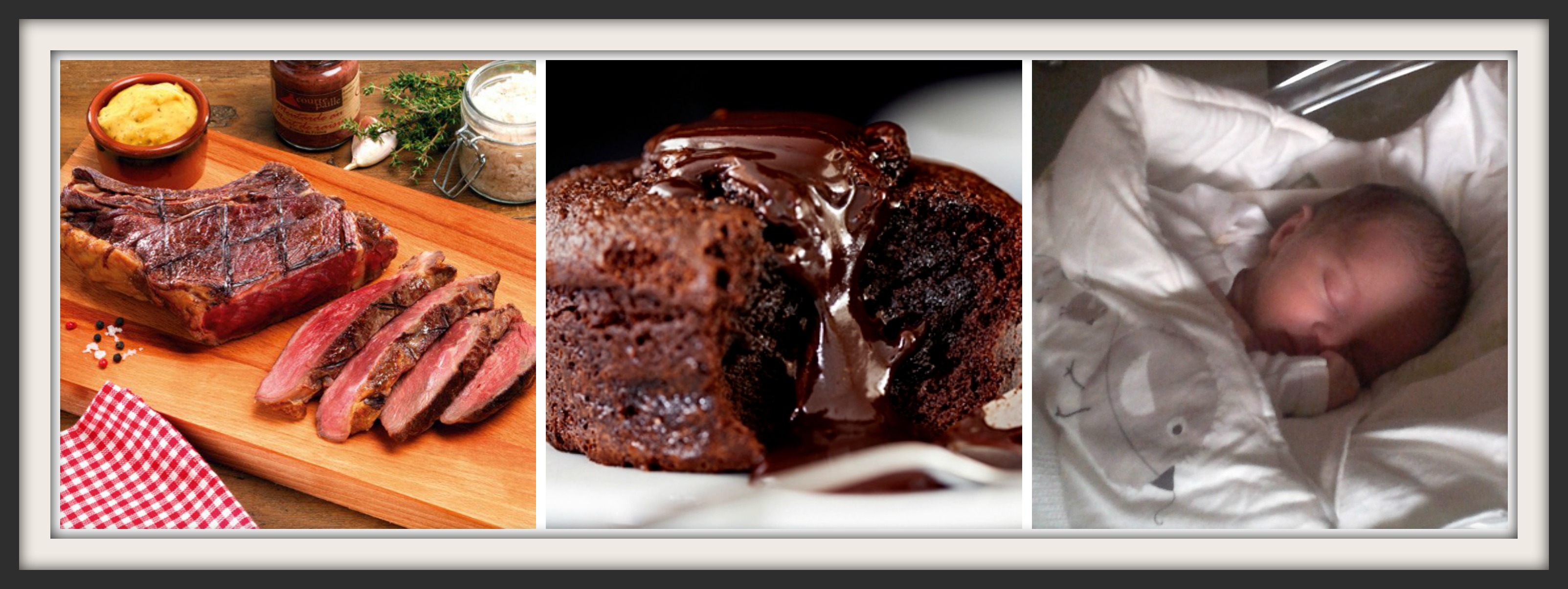 Je sais pertinemment que je suis en train de perdre les eaux mais, n’ayant pas de contractions, je ne dis rien à personne. Je finirai ma côte de bœuf quoi  qu’il arrive !