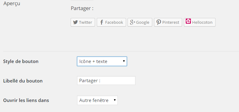 Twitter,Facebook, Google+ et Pinterest, trône un petit logo Hellocoton.